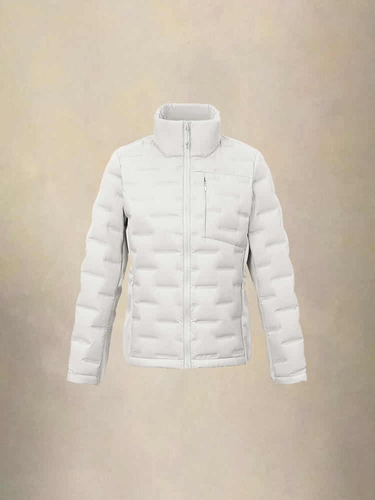面料升级,100%锦纶面布更防风保暖 •内里90白鸭绒,高效聚热。•整身无缝压胶防钻绒设计,不跑绒,全方位保暖。•胸前拉链口袋+隐形内袋设计,方便携带随身物品。•高领构造,包裹性能更强,更保暖。•侧面拼接贝鼻绒面布,增加实用性和时尚感。