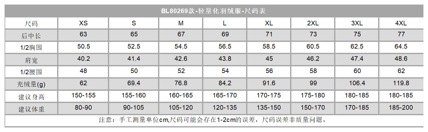 面料成份:82.5%锦纶17.5%氨纶+100%聚酯纤维 填充物:鸭绒 ,绒子含量90% 颜色:2色尺码···