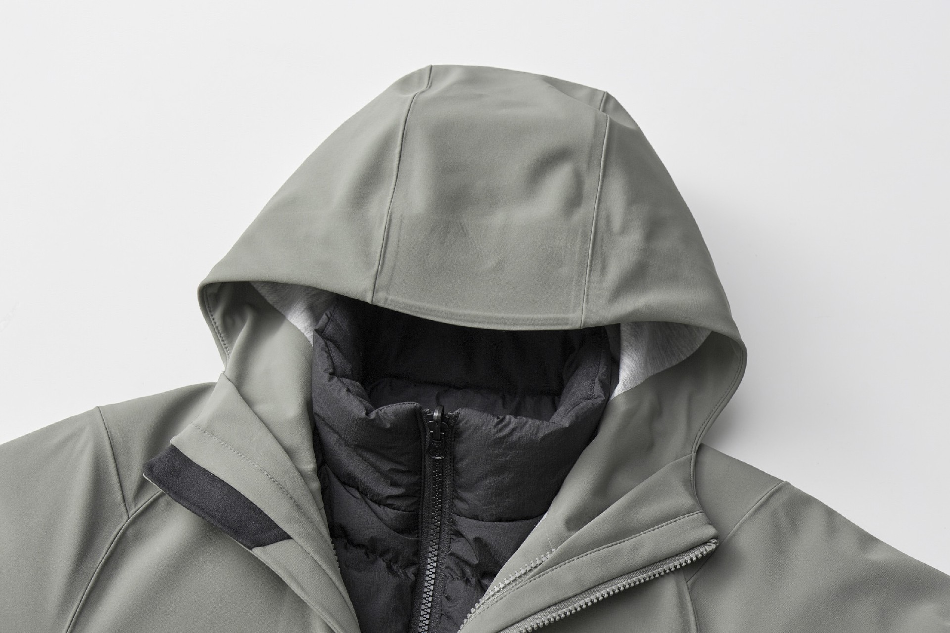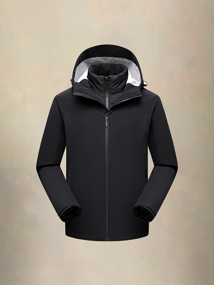 外衣:75D单经双纬T800三层复合-100%聚酯纤维 内胆:100D涤纶四面弹复合摇粒绒-92%聚酯纤···