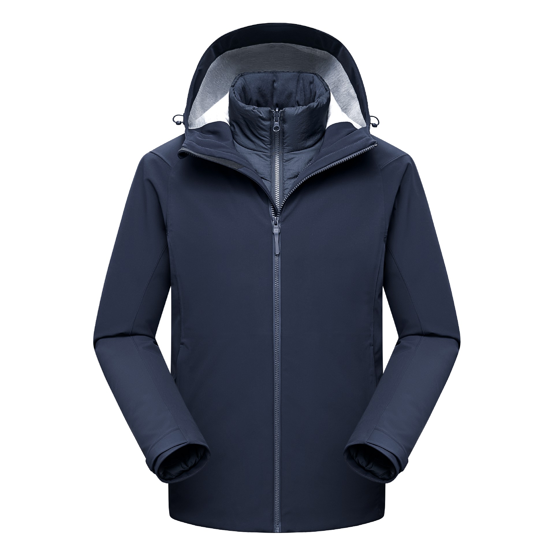 40D尼龙珍珠点/TUP/冰爽天丝斜纹科技面料制作,卓越防水性能,有效保护身体不被雨水打湿。近乎完美的防风设计,有效抵御外界寒风侵袭。